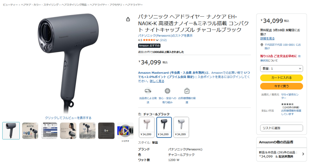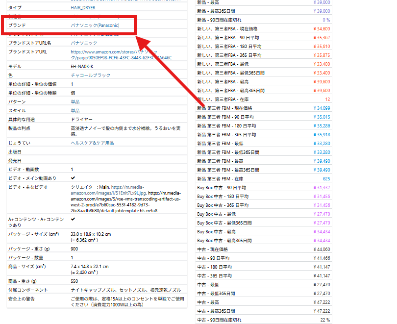 ここには、先程のドライヤーと同じ「パナソニック(Panasonic)」というブランドで登録されている商品が表示されています。