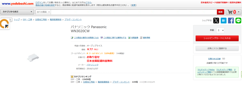 試しに一番上の商品をヨドバシで検索してみると、、、
